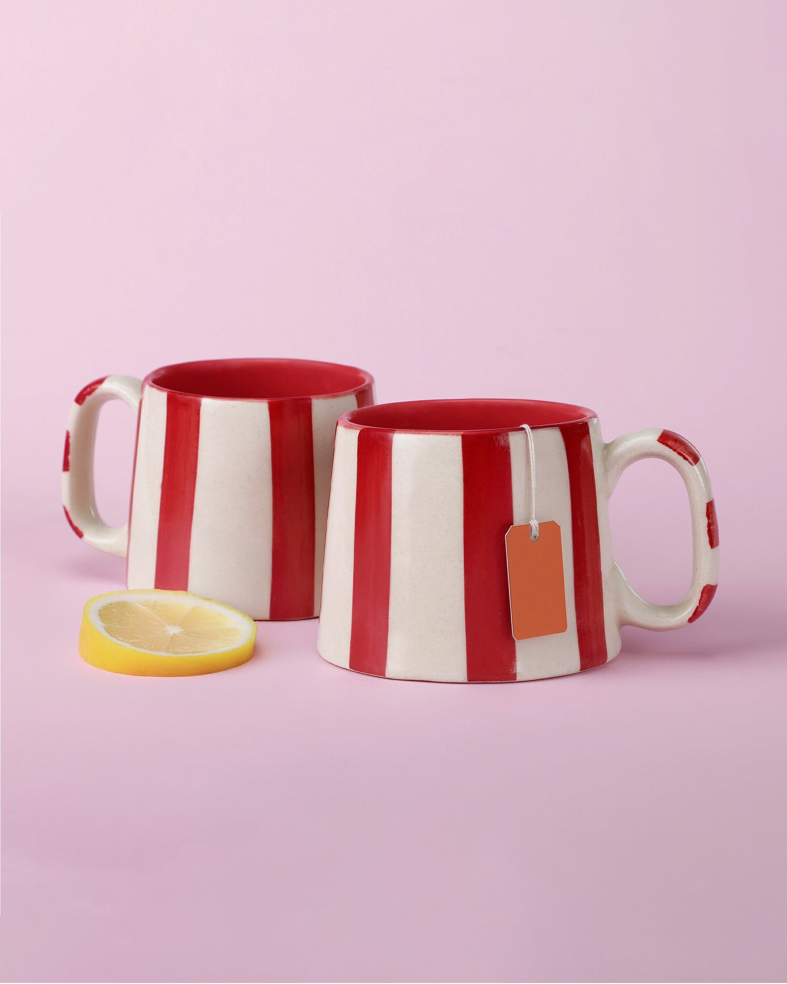 Ceramic Red Stripe Coffee Mug - Set of 2